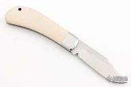This slipjoint from Pepe Jalomo features a satin finished blade with nail nick. The handle has stainless steel bolsters, ivory paper micarta covers with a stainless steel escutcheon, pins, and liners, stainless steel spring. Spring is flush in the closed, half stop, and open positions. Has a few scratches, otherwise excellent condition.