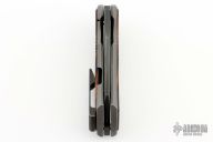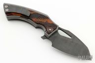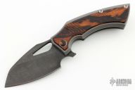 This Sancha M by Eric Luther features a deep etch Justin Reynolds Carbon Damascus San-Mai blade with thumb hole and flipper. The handle has a tumbled and etched titanium frame with Ironwood inlays, Ironwood inlaid pivot, floating Damascus backspacer, and matching tip up clip. Comes with zipper case and COA dated 2.19.24. Nice detent, lockup and blade seating. New from maker!