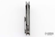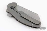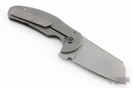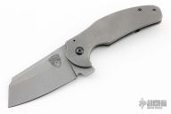 This frame lock features a stonewashed sheepsfoot blade. The handle features a stonewashed titanum frame with a matching tip up titanium pocket clip. Has scuffs and scratches. Would make a good user.