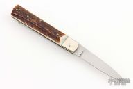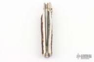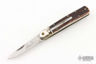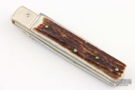 This leverlock auto by Hubertus features a high polish blade, nickel silver bolsters, stag scales, and brass liners and pins. Opens with a nice snap. Very fast opening. Has a couple light scuffs and scratches, excellent condition otherwise.