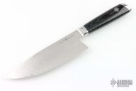 Combining American design and aesthetics with the beauty of pattern welded Damascus, the Bowie Chef® offers the best aspects of "western" style blade geometry as well as the precise 16º razor-sharp edge like that of the highest performing Japanese cutlery.