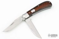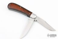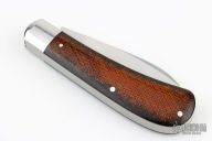 This Slipjoint by Ricardo Romano features a hand rub satin finished blades with nail nicks. The handle has mirror polished stainless steel bolsters, micarta covers with stainless steel escutcheon, stainless steel liners and springs. Fileworked liners and springs. Has half-stops, flush in all positions. Comes with a zippered case. Has a couple light scuffs, excellent condition otherwise.