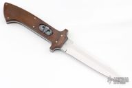 "Howard Viele is at the pinnacle of the list of knifemakers hand making high-tech modern liner-locks from his Westwood, New Jersey Shop. He became a knifemaker through an unusual quest. After attaining the rank of "Sandan" (3rd degree black belt) in Karate in 1973, he became interested in the weaponry associated with the martial arts. When Howard began making knives, there was no one in the area to teach him any secrets and shortcuts, so he learned to make knives through trial and error, thus no particular knifemaker's designs have influenced his work. He has been a member of the Knifemakers' Guild since 1976 and is also a member of the German Knifemakers' Guild." Howard passed away in 2019.