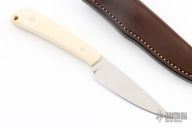 This "Beretta" by Arno Bernard was made for Beretta, it features a mirror finished drop point blade with .104" blade stock and .789" blade depth, full tang construction. The handle features warthog tusk scales. Includes a brown leather sheath. Excellent Condition.