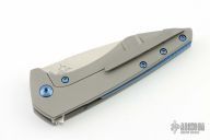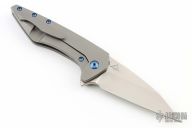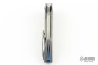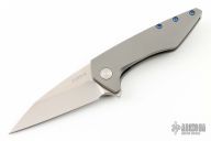 The Koenig Mini-Goblin 3 inch folding pocket knife is a collaboration between Edison Barajas of Sharknivco and Koenig Knives. The Mini-Goblin features a 3 inch stonewashed blade with notched thumbrest and flipper. The handle has a bead blasted titanium frame with an anodized titanium backspacer and tip up clip with hidden screws. Comes with original box and card dated 3/27/19. Excellent condition.
