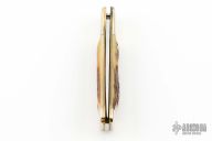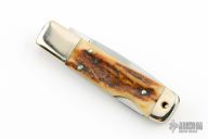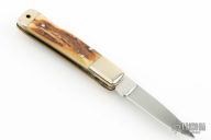 This Lockback by AG Russell features a mirror polished blade with nail nick. The handle has nickel silver bolsters, stag scales and brass liners. Has some light scratches, otherwise excellent condition.