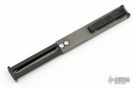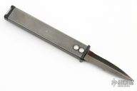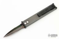Unusual automatic where the blade is fixed and the release button retracts the guard. Blued serrated dagger blade and body. Has a couple light scuffs and scratches, otherwise great condition.