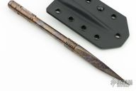 This Kuba-Shank by Thompson Knife and Tool features a triangle shaped blade with anodized finished blade and body with ball bearing in the end. Comes with a kydex sheath with Ulti-Clip. Excellent condition.