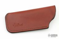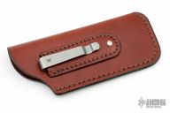 This Large brown leather sheath by SoulBound Leather is made from premium full grain English Bridle Leather from Wickett & Craig and has a stainless steel pocket clip. New from maker. 5" tall and 2.25" wide. It will fit a knife 4.5-6" in length closed, and 1.5-2" in width. Not to exceed 0.675" in thickness.