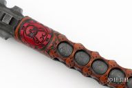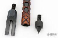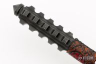 This Breacher Boy by Hate Stick Manufacturing Co. and Zu Bladeworx features a distressed finished head with four strike points. Brown leather grip with windowed skull work. Very Cool. Comes with interchangable head with spike. New from maker at the 2024 Blade Show.