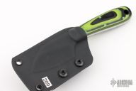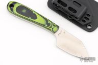 This Hiker by Mickey Yurco features a satin finished blade with notched thumbrest, .169" blade thickness and 1.145" blade depth, full tang construction. The handle has black/green G-10 scales. Comes with a kydex sheath. New from maker at the 2024 Blade Show. #4692