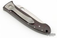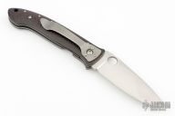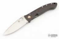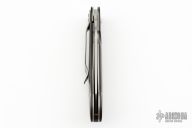 This All Rounder by Bob Lum features a hand rub satin finished blade with thumbhole. The handle has carbon fiber scales with a copper pivot collar, bead blasted titanium liners, black G-10 backspacer and a tip down bead blasted titanium clip. Nice detent, lockup and blade seating. Excellent condition.