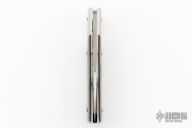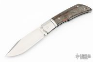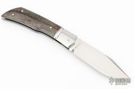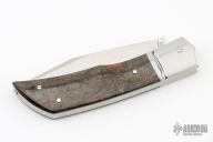 This slipjoint by Remi Lavialle features a satin finished clip point blade.  The handle has fluted steel bolsters, marbled carbon fiber covers and steel liners/backspring. The backspring is firm.  Excellent Condition.
