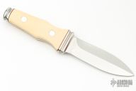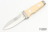 This is a very attractive boot knife from AG Russell. This is the older model made in Solingen, Germany. Blade is .095" thick and .920" deep at the ricasso and double-edged. Scales are ivory paper micarta. Integral construction with aluminum pins. Has a couple light scratches, otherwise excellent condition.