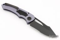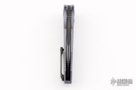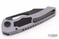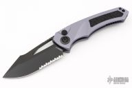 This Pariah Manual by Heretic Knives features a black partially serrated blade with notched thumbrest and dual thumbstuds. The handle has a gray aluminum frame with non-slip inserts, black titanium pivot collars and a tip up clip with ceramic ball. Comes with original box. New from maker.