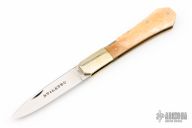 This Slipjoint by Frost Cutlery has mirror finished blade with nail nick. The handle has nickel silver bolsters, bone covers with brass liners, steel springs. Has a couple light scratches, otherwise excellent condition.