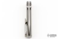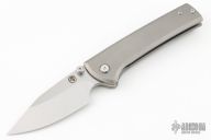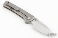 This Chaves Scapegoat features a satin finished drop point blade with the Chaves logo and dual thumbstuds. The handle has a stonewashed titanium frame and a matching skull pocket clip. Includes an interchangeable titanium clip. Comes with original box. Excellent condition.