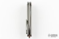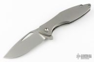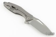 This Arius by Koenig knives features a Burnished w/ PF finished blade with thumbhole and flipper. The handle has a "Smooth" titanium frame with a matching titanium tip up clip and satin titanium backspacer. Has ceramic bearings and a ceramic detent ball. Nice detent, lockup and blade seating. Comes with original box and COA April 18, 2022. Excellent condition.