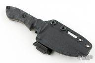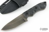 This knife by Tim Kell featurse a milled blade with .167" blade stock and 1.236" blade depth, full tang construction. The handle has black G-10 scales. Comes with kydex sheath. Has a little oxidation on the edge, otherwise good condition.
