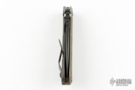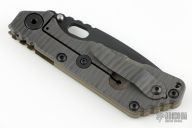 This MS SNG framelock folder by Mick Strider features a black blade and a MEFP green G-10 and flamed titanium frame and tip up titanium clip. Includes Hinderer "Lock Bar Stabilizer" for maximum reverse lock retention. Nice detent, lockup and blade seating. Excellent Condition.