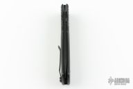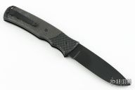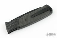 This Automatic by Z Custom Knives features a black finished drop point blade with thumbramp. The handle is comprised of a black checkered titanium frame with carbon fiber inlays and inlaid push button over a black stainless steel backspacer. Black Tip up titanium clip. Has a couple light scuffs, excellent condition. Hard to find!