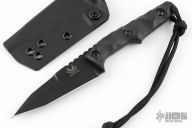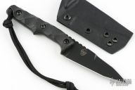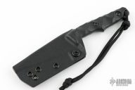 This Huginn EDC by Bawidamann Blades was named after Odin’s Raven. It features custom black cerakote finish on the double edged blade, has notched thumbrest, .101" blade stock and 1.210" blade depth, full tang construction. The handle has IM Bawidamann Chunked Pattern Carbon Fiber scales (proprietary Carbon fiber composite). Comes ready to carry with the Bawidamann Uberscabbard. Has some minor sheath scratches on the blade, otherwise excellent condition.