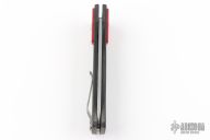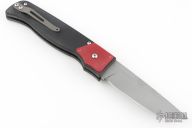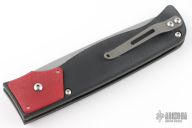 This Tiger I side-opening automatic by Rob Dalton features a bead blasted blade and a red G-10 handle with black G-10 bolsters and a bead blast titanium tip up clip. Strong and fast coil-spring opening. Excellent condition.