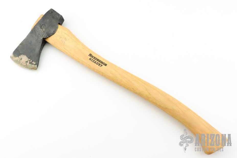 Forged Axe from the Axe Company. 3" blade, 6.125" from edge to poll. 19.5" Smedbergs Hickory haft. Has some wax on the blade edge. New from maker.