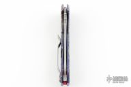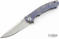 This 0450 Sinkevich designed folder from Zero Tolerance features a drop point blade with swedge and flipper. The handle is comprised of a custom anodized titanium frame over blue stand-offs. Has a blasted SS pocket clip, clip is reversible for right or left hand carry. Includes the original box and papers. Has been resharpened, otherwise excellent condition.