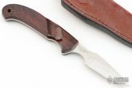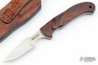 This caper by Beretta features a satin finished drop point blade with .079" blade stock and .784" blade depth, full tang construction. The handle features cocobolo scales. Includes a brown leather sheath. Has a couple light scratches, otherwise excellent condition.