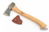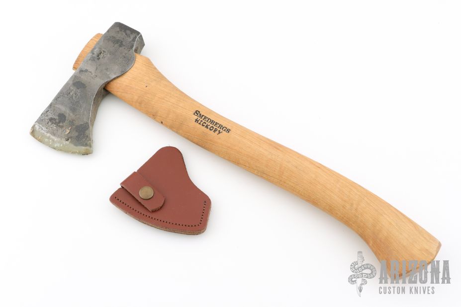 Forged Axe from the Axe Company. 2.625" blade, 6.25" from edge to poll. 15.5" Smedbergs Hickory haft. Has some wax on the blade edge. Comes with a sheath. New from maker.