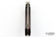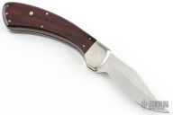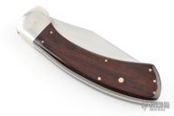 This Case folder features a satin finished drop point blade. Nickel Silver front bolsters, wood scales with a Case escutcheon lock release. Brass liners and steel springs. Includes original sheath. Excellent condition.