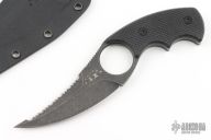 The knife is built around a single index finger hole, serving a few combat driven functions such as being able to not lose the knife if for some reason the user must open his hands. Also, the hole is a formidable guard to protect the hand during defensive or offensive use, without the downside of a traditional guard that can get caught in clothing during deployment.