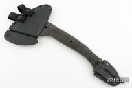 This axe was developed for a military rescue/extraction team to meet their needs for a tool that can be used when power tools either fail or are unavailable. Its purpose is to remove survivors, casualties and sensitive equipment from crashed aircraft and ground vehicles. Designed for cutting metal, the blade will not hang in sheet metal. The tapered tang enhances power in a stroke and distributes the majority of the weight to the head making it possible to cut or break through cross beams. The axe features a point on the back of the head that serves a glass breaker, as well as a hole punch for making an entry point for the can opener on the handle. Pictured here with green Micarta handle scales. An good option is rubber handle scales which provide a secure grip in wet or dry conditions and excellent shock-absorption. Functioning as a portable Jaws of Life this extraction tool has proven its effectiveness to law enforcement, first responders and rescue workers, as well as to the team for which it was designed. Price includes a Kydex Carrier with nylon webbing belt hanger. Optional molle clip carry system is available.