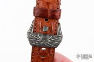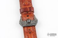 David Riccardo Engraved Zirconium Watch Buckle w/ Zirc Prong. Silver Inlays. 22mm. Comes mounted on a crocodile watch band for a 24mm watch. Has some light scratches, otherwise excellent condition.