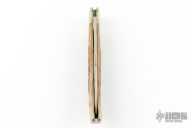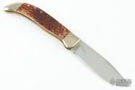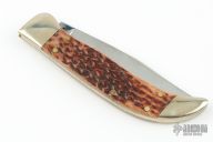 This Ka-Bar slipjoint is dated 1989. It has a mirror polished blade, nickel silver bolsters, jigged bone scales, brass liners, and stainless steel spring. Comes with original box. New old stock from old Ka-Bar dealer. Has a few light scratches. #0074