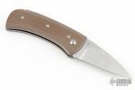 This lockback folder by David Clark features a satin finished blade with thumbstud. The handle has brown G-10 scales, stainless steel liners and backspring. Nice lockup and blade seating. New from maker!