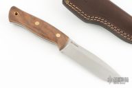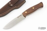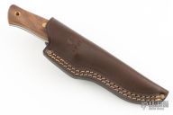 It combines classic design concepts with the most personal visión of the famous spanish designer J.Sabater, thus creating a unique modern knife with lines reminiscent of the purest Bushcraft knives. Its measured size, 11.02cm/8.69in blade, together with a thickness suitable for the activity, 3.7-3.8mm/0.14in, make it a very portable knife as primary tool, only 170g/6ounces without sheath or 260g/3,45ounces with sheath. All these details, together with the quality of its Böhler k110 HC Steel tempered HRC 58-59, the noble woods and an excellent leather quality sheath, taken care of down to the las detail, make it a perfect partner for your