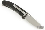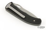 The Double-Duty automatic is a double-action automatic that can function as a one handed opening locking-liner knife or be instantly fired in the automatic mode. The automatic firing mechanism is hidden under the handle and is activated by sliding the front side handle scale towards the back of the knife. Because there are no apparent buttons on the outside of the handle the fact that this is an automatic is known only to its owner. The liners, pocket clip and internal components are stainless steel. The handle is textured black G-10. The knife is lightning fast, good looking and comfortable in the hand. Comes with a nylon Velcro belt shedath. Has a couple light scuffs and scratches, excellent condition otherwise.