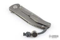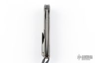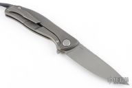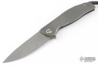 This Model 95 Zero framelock flipper from Shirogorov has a flat ground and tumbled blade with a milled and tumbled titanium frame with matching tip up clip. Excellent lockup, crisp detent, and perfect seating. Comes with original box and papers. Has a couple light scuffs, otherwise excellent condition.