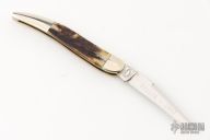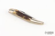 This slipjoint by Schatt and Morgan features a mirror finished blade with nail nick. The handle features nickel silver bolsters, brass liners and stag covers. Steel spring. Has light scratches, otherwise excellent condition. 1 of 1000