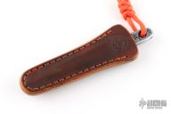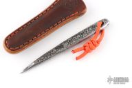 Hand forged by Ryan Johnson at the Gold Point Forge! The Thistle from Ryan is a handy small and discreet EDC companion, that is light enough to carry all day while still being substanial and easy to use. The shaft features RMJ's pirate motif that adds a killer look while also providing a bit of extra traction. The triangular needle like point is perfect for when you need to mark, pry or poke a hole in somthin'! Added cordage on the back to aid in ease of deployment. Comes with a custom leather sheath with IWB clip and finished with Ryan's homemade dye concoction.