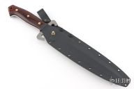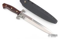 This custom Crossada was designed by Master at Arms James Keating and made by Tom Krein. Has a bead blasted and satin finished double edged bayonet ground blade, .277" blade stock and 1.515" blade depth, full tang construction with rosewood scales and brass pins. Comes with a kydex sheath. Has some light sheath scratches, otherwise excellent condition. Made in 2005.