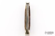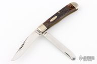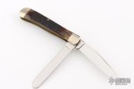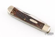 This Trapper by Case knives features polished blades with nail nicks. The handle has nickel silver bolsters, jigged bone covers, brass liners and stainless springs. Has some light scratches, otherwise good condition.