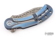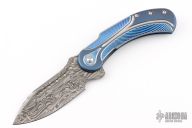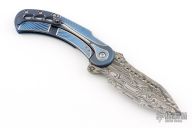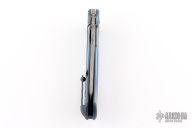 The Field Marshall from Steelcraft Knives features a Draupner Damasteel blade, notched thumbrest, fullers and a flipper. The handle has an anodized and milled titanium frame with a matching backspacer and tip up clip with ceramic ball and hidden screws. Ceramic IKBS. Comes with original box and papers. Nice detent, lockup and blade seating. Excellent condition.