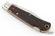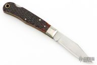 This Lockback by AG Russell features a satin finished blade with nail nick. The handle has nickel silver bolsters, jigged bone scales and brass liners. Has light scratches, has been resharpened, otherwise good condition.