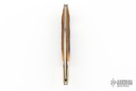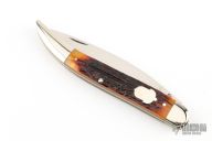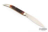 This Toothpick by AG Russell features a satin finished blade with nail nick. The handle has nickel silver bolsters, jigged bone covers with a nickel silver escutcheon, brass liners and steel spring. Excellent condition.
