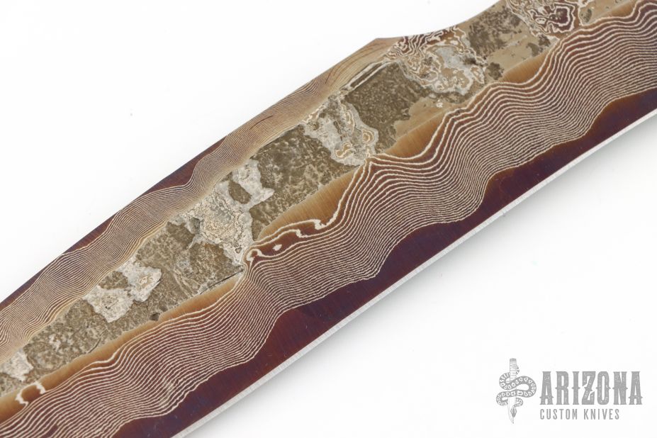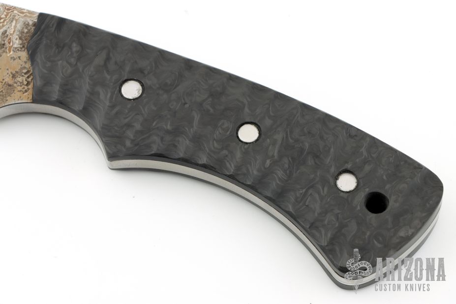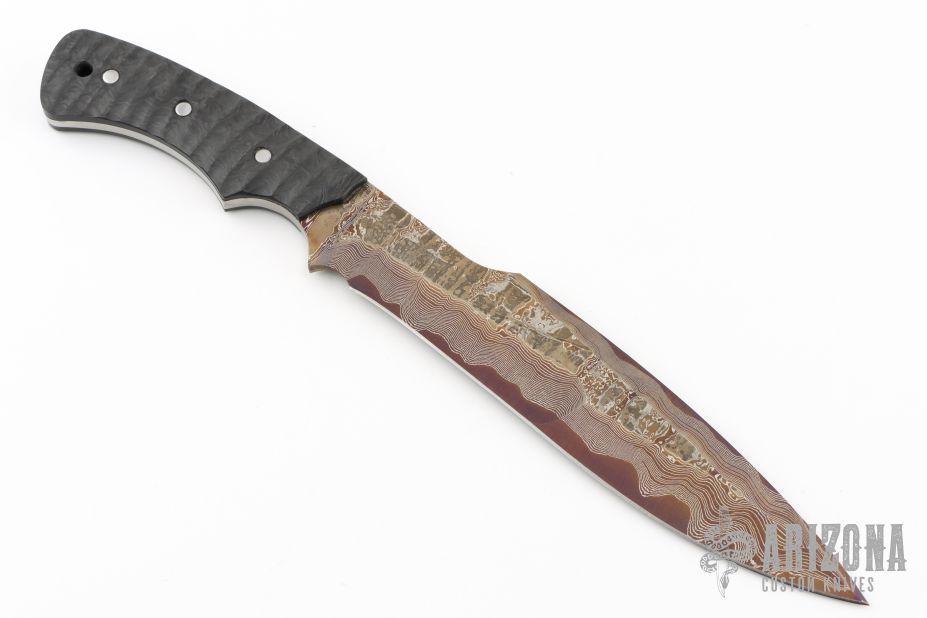 MSC Cobalt Damascus Nightmare Grind Fixed Blade - Marbled Carbon Fiber Scales