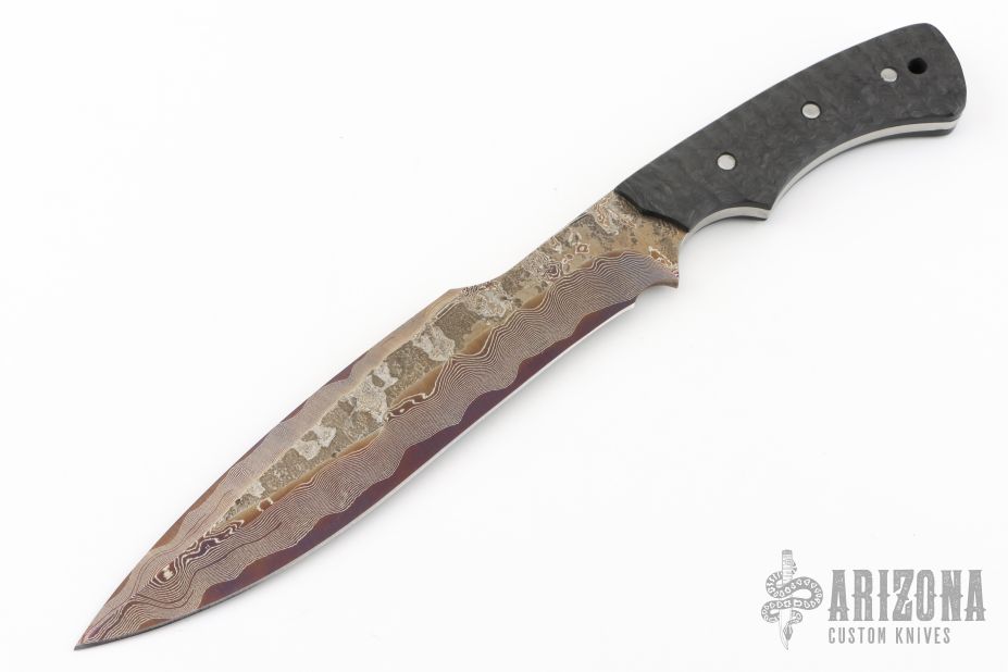 Home Products MSC Cobalt Damascus Nightmare Grind Fixed Blade - Marbled Carbon Fiber Scales