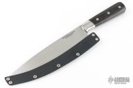This Chef Knife by Apex Steel Works features a satin finished drop point blade with a full tang construction.  .132" Blade Stock.  1.889" Blade Depth.  The handle has steel bolsters with bog oak scales.  Includes a kydex blade cover.  These chef’s knives are a direct competitor to the highest quality Japanese and German cutlery with a <.005 terminal edge, 60-61HRC S35VN blade.  New from maker!